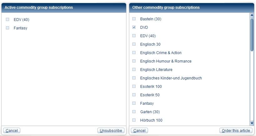 - Select one or more commodity group subscriptions on the right and click Order this article.