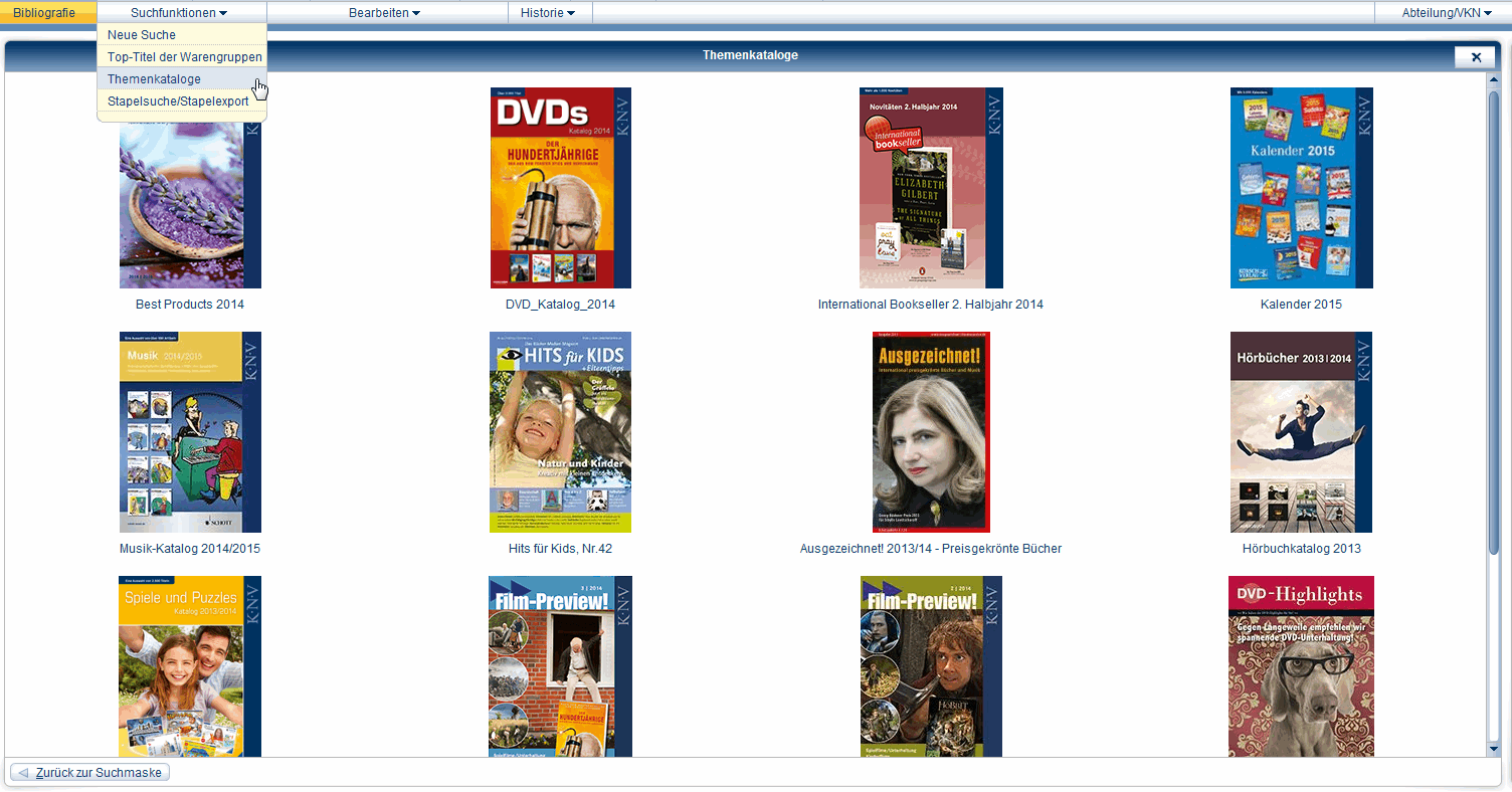 ThemenkatalogeIn den Themenkatalogen werden Artikel oder saisonale Themen in gängigen Rubriken für Sie bereitgehalten und ständig aktualisiert. Die Themenkataloge sind unabhängig von den Warengruppen, können also Artikel aus unterschiedlichen Warengruppen enthalten.