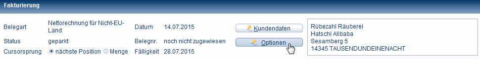 - entweder als feste Vorgabe in der Stammadresse des Kunden, die dann automatisch für jede neue Rechnung übernommen wird