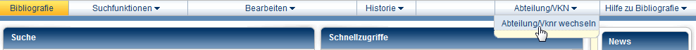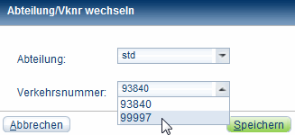 Abteilung oder Verkehrsnummern wechselnSie haben die Möglichkeit, während einer pcbis.de-Sitzung die Verkehrsnummer oder die Abteilung zu wechseln. Wählen Sie im Menü Abteilung/VKN den Befehl Abteilung/Vknr wechseln.