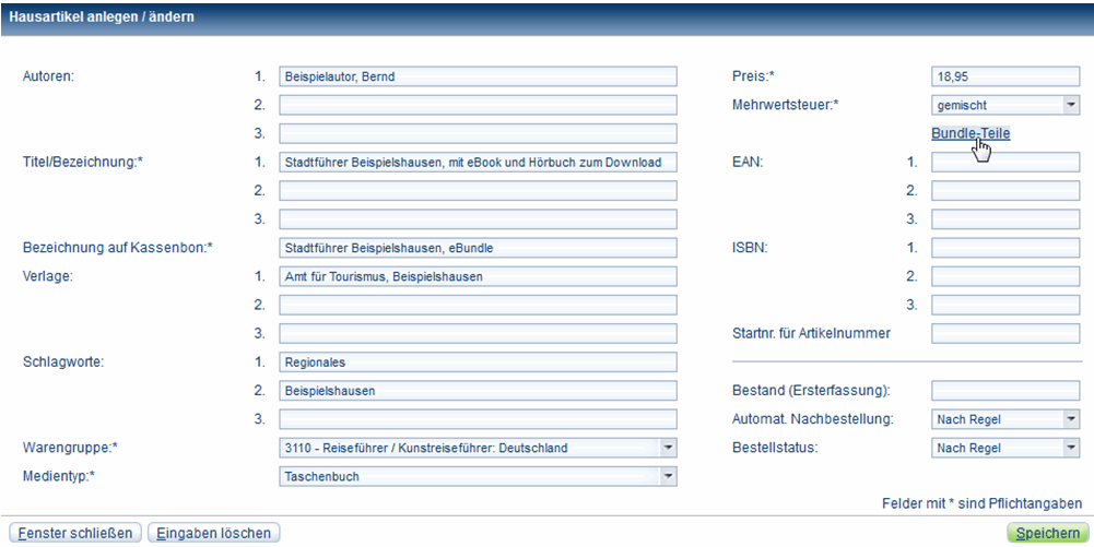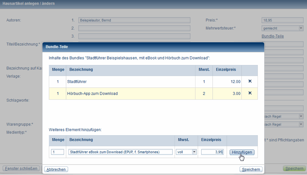 Sie können einen Hausartikel auch als eBundle anlegen.