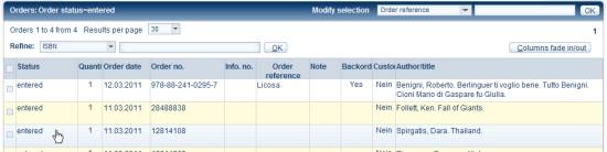 In the full view you can use buttons to display customer data, notes, the publisher's address and delivery address as well as commercial data on an order line.